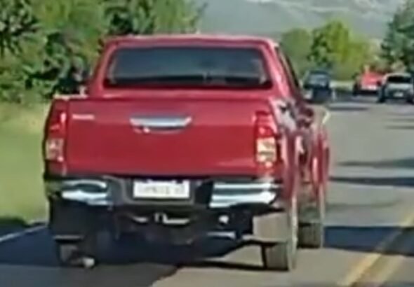 La mujer manejaba una camioneta y fue grabada mientras hacía un sobrepaso en una zona de curvas...