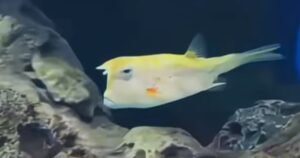 Es de la especie vaca cornudo (Lactoria cornuta).Cuando lo atrapan emite un gruñido.