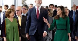 Leticia y Felipe VI se mostraron muy interesados en el trabajo de la artista Agustina Woodgate, exhibido...