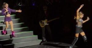 La actriz y modelo se tropezó y cayó del escenario ante la mirada del público.Rápidamente se recuperó...